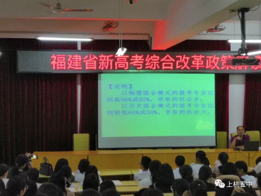 新高考强势来袭,高一学生该如何理性选科?学校又该如何有效组班?在新高考模式下学生该如何抢得先机?……针对学生和家长提出的一系列问题,6月20日晚上,陈昌怀副校长专程为高一师生作了一场福建省新高考综合改革政策解读的报告。
