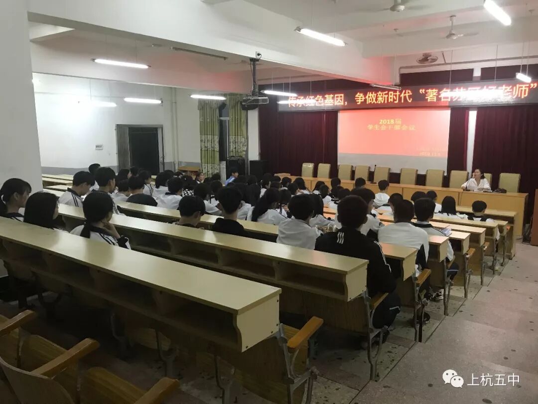 2018年11月6日,上杭五中团委2018届学生会第一次大会在阶梯教室举行。大会由学生会主席吴婷主持,团委书记丘艳老师及学生会全体成员参加了此次会议。