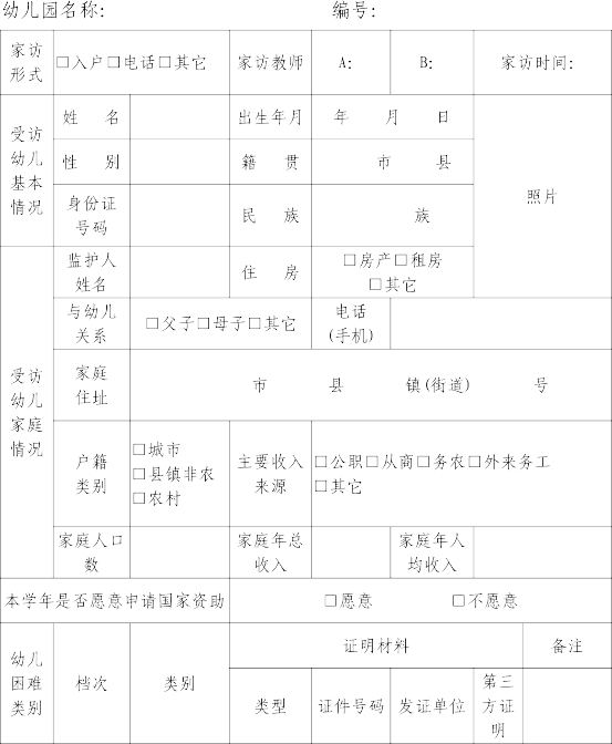 福建省家庭经济困难学生认定及家访记录表 (学前)