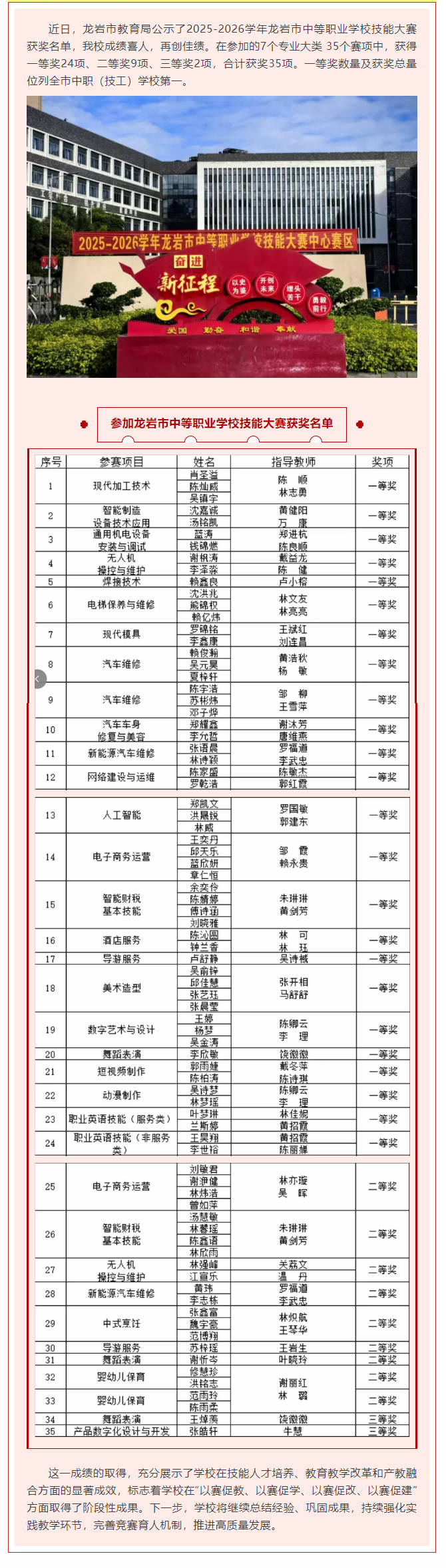 龙岩华侨职专在2025-2026学年龙岩市中等职业学校技能大赛中再创佳绩